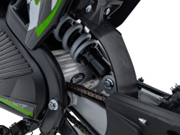 Odolný rám s práškovým lakem, vyztužená kyvná vidlice a kvalitní pružné plasty vydrží hrubší zacházení. Hydraulická teleskopická vidlice vpředu a nastavitelný zadní tlumič efektivně tlumí nerovnosti. Díky regulaci rychlosti a točivého momentu na klíček lze stroj snadno přizpůsobit schopnostem jezdce.