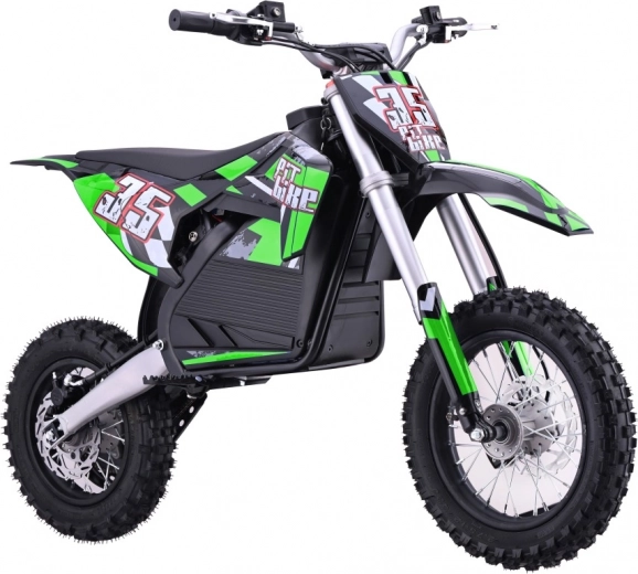 Objevte zábavu v terénu s kompaktním elektrickým pit bikem v zelené barvě. Nabízí výkonný motor 1000 W, lithiovou baterii 36 V 10,4 Ah, terénní pneumatiky a kotoučové brzdy vpředu i vzadu pro jistotu a kontrolu. Robustní ocelový rám s práškovým lakem, hydraulické přední odpružení a nastavitelný zadní tlumič zajišťují pohodlnou jízdu. Rychlost i točivý moment lze regulovat klíčkem, nechybí ukazatel stavu baterie.