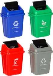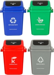 Čtyři koše z odolného plastu s jasnými symboly a barvami pro snadnou orientaci. Lze je spojit do jedné řady.