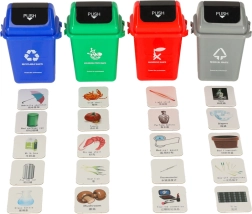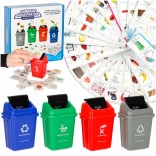 Objevte chytrou a hravou cestu k ekologii. Tato vzdělávací hra děti provede zásadami třídění odpadu pomocí čtyř barevných košů a 108 ilustrovaných karet s předměty každodenní potřeby. Učení je přirozené, zábavné a motivující – kdo nejrychleji přiřadí správný odpad do správného koše?