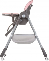 Praktický dvojitý podnos s odnímatelnou horní částí usnadňuje servírování i čištění. Bezpečnost zajišťují 5bodové pásy s polstrováním a T-tyč na základním tácu. Díky 4 kolečkům židličku snadno přesunete po bytě, zatímco úložný koš pojme hračky i potřeby ke krmení. Kompaktní skládání šetří místo doma i na cestách.