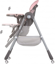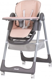 Praktická a pohodlná jídelní židlička pro děti do 15 kg s nadstandardní výbavou pro bezpečné a klidné stolování. Nabízí 4 polohy zádové opěrky, 7 výškových pozic sedáku, nastavitelnou opěrku nohou a měkké ECO kůže pro snadnou údržbu. O bezpečí se starají 5bodové pásy a stabilní konstrukce s kolečky pro snadné přesouvání. Součástí je dvojitý podnos, hrazdička s hračkami a úložný koš.