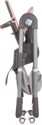 5bodové bezpečnostní pásy s měkkými ramenními polštářky, stabilní konstrukce a 4 kolečka pro snadné přesouvání. Hrazdička s hračkami zabaví dítě během čekání na jídlo.