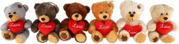 Vyberte si medvídka přesně podle svého stylu – k dispozici je 6 barev od světlé béžové po hřejivě hnědou a šedou. Každý drží srdce s nápisem Love.