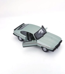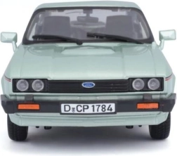 Kovový model Ford Capri 1982 v měřítku 1:24 v elegantní světle zelené barvě. Ideální pro sběratele a milovníky klasických aut díky jeho autentickému provedení a detailům.