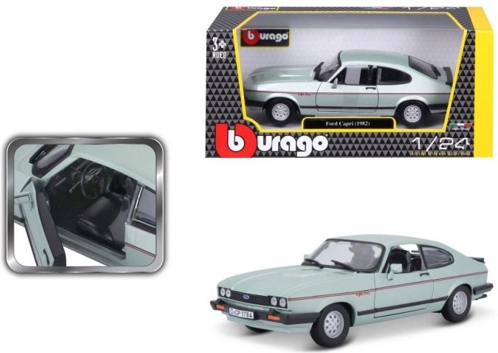 Tento detailní model Ford Capri z roku 1982 nabízí nadšencům a sběratelům mimořádné zpracování a kvalitu, které jsou pro Bburago charakteristické. Model je vhodný pro vystavení a je věrným zobrazením skutečného vozu s důrazem na každý detail.