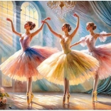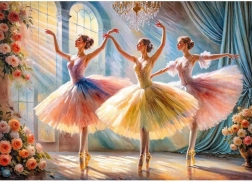 Zažijte zábavu a relaxaci s tímto krásným puzzle o 1000 dílcích, které zobrazují tři baletky v elegantních pozicích.