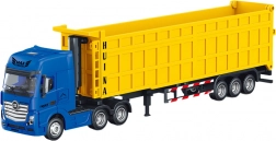 Model nákladního vozu s objemovým návěsem je precizně zpracován z kvalitní slitiny kovu a odolného ABS plastu, což mu zajišťuje pevnou konstrukci a věrné detaily. Tento model je skvělou volbou nejen pro sběratele, ale také pro všechny, kteří se zajímají o těžkou dopravu.