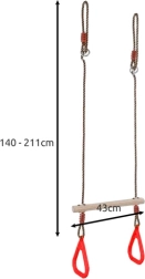 Trapez nabízí možnost regulace délky lan, což usnadňuje přizpůsobení potřebám různých prostředí a výšce dítěte.