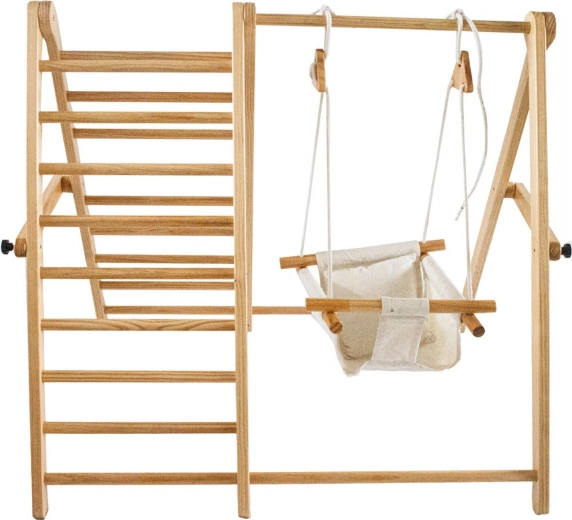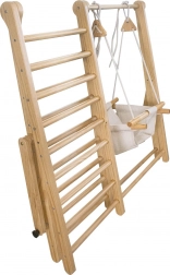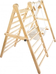 - Vybavený oboustranným lezeckým žebříkem a houpačkou s látkovým sedátkem.