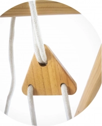 - Výškově nastavitelná houpačka – s pevnými lany a dřevěnými háčky.