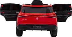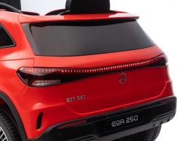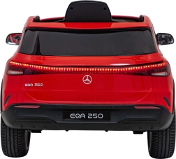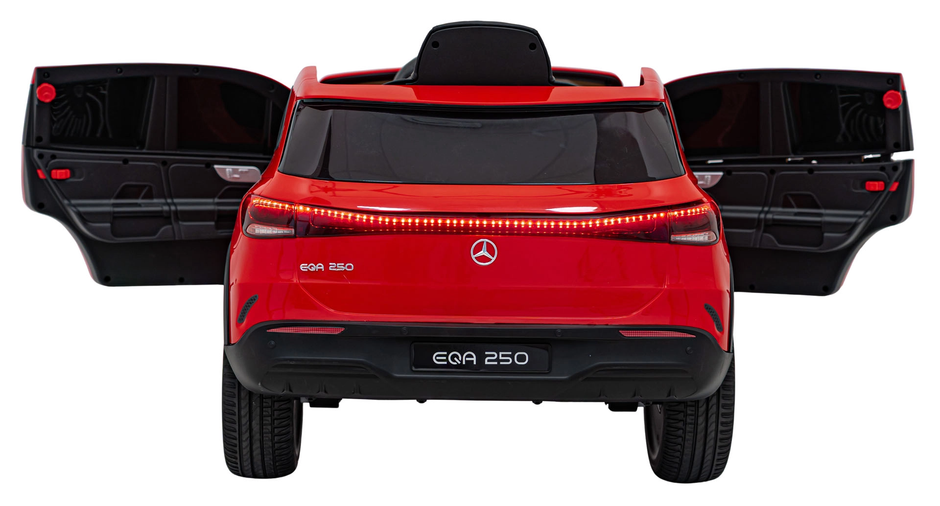 Stylové dětské elektrické auto Mercedes‑Benz EQA 250 v červené barvě nabízí 4x35 W motory, výkonný akumulátor 12 V 10 Ah a pěnová kola EVA pro pohodlnou jízdu. Díky otevíracím dveřím, LED světlům a bohatému audio panelu s Bluetooth/USB/MP3 si děti užijí realistický zážitek, zatímco rodiče ocení dálkové ovládání 2,4 GHz s nouzovým tlačítkem Stop.