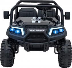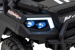 Robustní dětský off-road pick‑up s pohonem 2x200 W a baterií 24V 9Ah pro spoustu zábavy v terénu. Nabízí dvě sedačky z eko kůže, pěnová kola EVA pro tichou jízdu, přední a zadní LED světla, bohatý audio panel s FM, MP3 a Bluetooth a dálkové ovládání 2,4 GHz s bezpečnostním tlačítkem STOP. Nosnost až 60 kg a velký zadní nákladový prostor pro hračky.