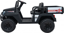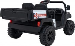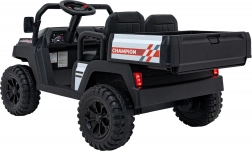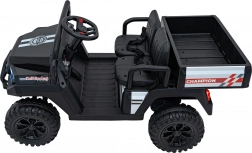 Výkonný elektrický pick‑up CHAMPION ve výrazném černém provedení je stavěný na dobrodružství. Dva motory 200 W (celkem 400 W) v kombinaci s baterií 24V 9Ah poskytnou sílu i do mírného terénu, zatímco pěnová kola EVA a kompletní odpružení vpředu i vzadu zajišťují komfort a stabilitu. Plynulý rozjezd, 2 rychlosti vpřed a zpátečka usnadní ovládání začátečníkům.