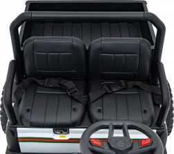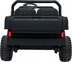 Interiér potěší dvěma sedadly z ekokůže s pásy, volantem s klaksonem a ovládáním zvuků a praktickým nákladovým prostorem s otevíratelnou burtou pro převážení hraček. Audio panel přináší Bluetooth, USB, MP3 a FM rádio, takže oblíbené písničky budou vždy po ruce. Stav baterie hlídá ukazatel nabití.