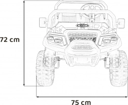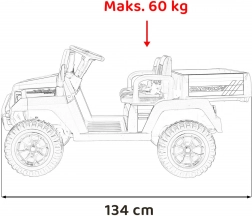 Rodiče ocení dálkový ovladač 2,4 GHz se třemi rychlostmi a bezpečnostním tlačítkem Stop pro okamžité zastavení. Maximální nosnost je 60 kg, díky čemuž je vůz vhodný i pro dvě děti. Součástí balení je nabíječka, návod a montážní sada.