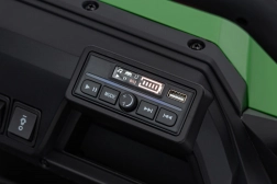 Přední a zadní LED světla s vypínačem a audio panel s Bluetooth, USB, MP3 a FM rádiem. Volant s klaksonem a zvukovými efekty pro ještě více zábavy.