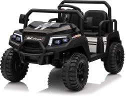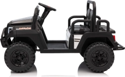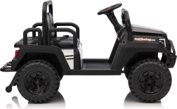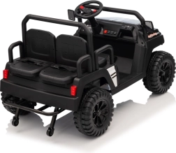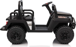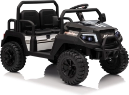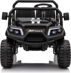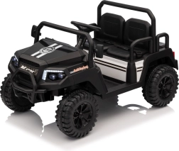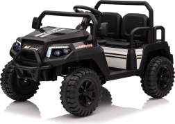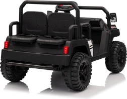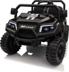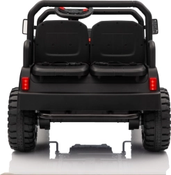 Rodiče ocení dálkové ovládání 2,4 GHz se třemi rychlostmi a bezpečnostním tlačítkem Stop, které umožní mít jízdu dětí pod kontrolou. Děti si užijí plynulý rozjezd, LED osvětlení vpředu i vzadu s vypínačem a bohatou výbavu audio panelu: FM rádio, MP3, Bluetooth, USB, klakson a zvukové efekty na volantu.
