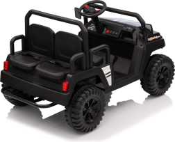Čtyřmístné elektrické buggy Champion v elegantní černé barvě je stvořené pro společná dobrodružství. Díky pohonu 2×200 W a baterii 24 V / 9 Ah nabídne dostatek síly i mimo zpevněné cesty. Velká pěnová EVA kola 29×12 cm a přední i zadní odpružení zajišťují pohodlnou a stabilní jízdu.