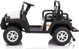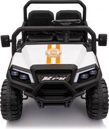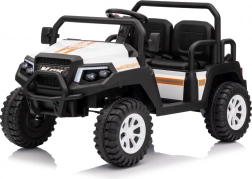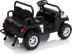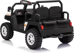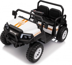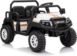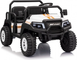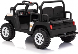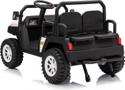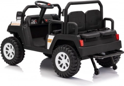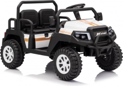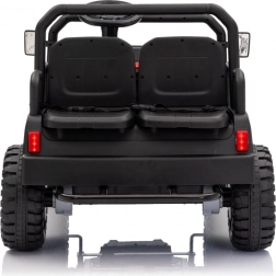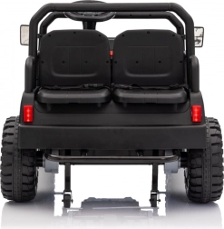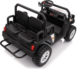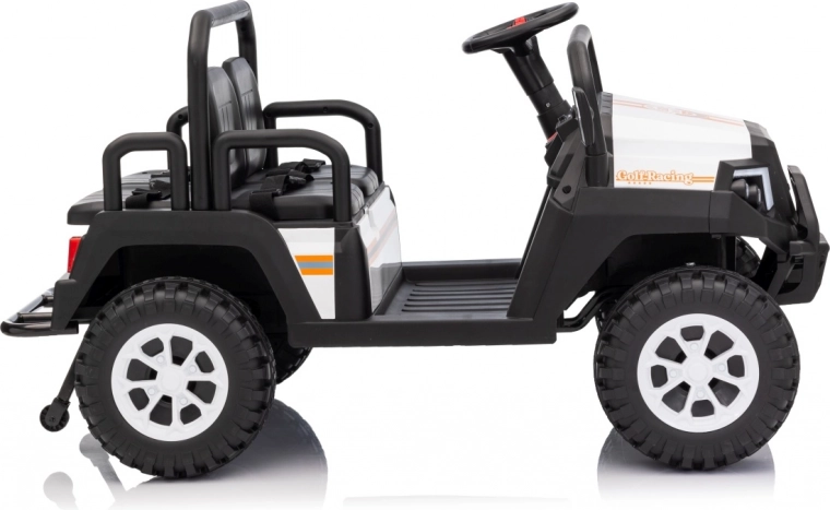 Výkonné a prostorné 4místné elektrické buggy pro děti s baterií 24 V 9 Ah a dvojicí motorů 2×200 W. Nabízí EVA kola 29×12 cm, odpružení vpředu i vzadu, plynulý rozjezd, LED světla a dálkové ovládání 2,4 GHz se STOP. Komfort zajišťují 4 sedadla z ekokůže s pásy, hudbu obstará FM/MP3/Bluetooth/USB. Nosnost až 120 kg.