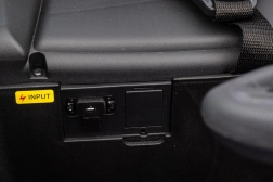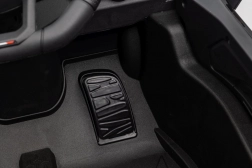 Komfort zajišťuje měkké sedadlo z ekokůže s bezpečnostním pásem, tichá EVA kola 19×8 cm a zadní odpružení. O zábavu se stará audio panel s MP3/Bluetooth/USB/AUX a FM rádiem, zvuky a klakson ve volantu a praktický ukazatel stavu baterie. Nechybí LED světla a ikonické výklopné dveře pro snadné nastupování.