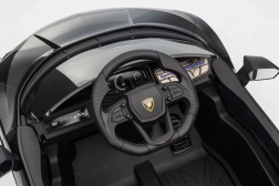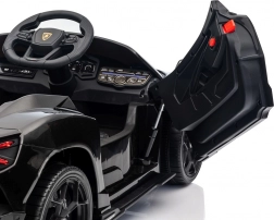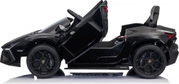 Stylové a bezpečné autíčko pro malé řidiče inspirované ikonou LAMBORGHINI. Nabízí 12 V 9 Ah akumulátor, 2× motory (dle verze), měkká EVA kola, kožené sedadlo z ekokůže, dálkové ovládání 2,4 GHz s nouzovým tlačítkem Stop, LED světla a otevírací dveře ve stylu scissor doors.