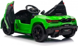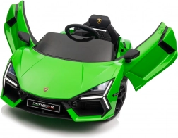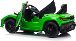 Autíčko se pyšní výrazným designem inspirovaným LAMBORGHINI Revuelto. Otevírací dveře umocní zážitek z jízdy a usnadní nastupování i vystupování.