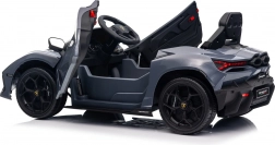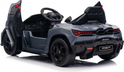 Bezpečnost zajišťují bezpečnostní pásy na sedadle z ekokůže a rodičovský dohled přes dálkový ovladač 2,4 GHz se třemi rychlostními profily a nouzovým tlačítkem Stop. Děti nadchne bohatá světelná a zvuková výbava – přední a zadní LED světla s vlastním spínačem a multimediální panel s Bluetooth, MP3, AUX, FM rádiem a USB. Otevírací dveře typu scissor dodávají autu autentický sportovní vzhled.