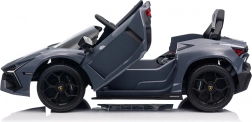 Stylové dětské elektrické autíčko LAMBORGHINI Revuelto v elegantní šedé barvě přináší realistický zážitek z jízdy. Výkonný pohon 2×45 W, baterie 12 V 9 Ah, měkká EVA kola, otevírací scissor dveře a komfortní sedadlo z ekokůže s pásy. Pro bezpečnost rodičů je k dispozici dálkový ovladač 2,4 GHz s tlačítkem Stop. Nechybí LED světla a bohatá audio výbava s Bluetooth/MP3/FM/USB.
