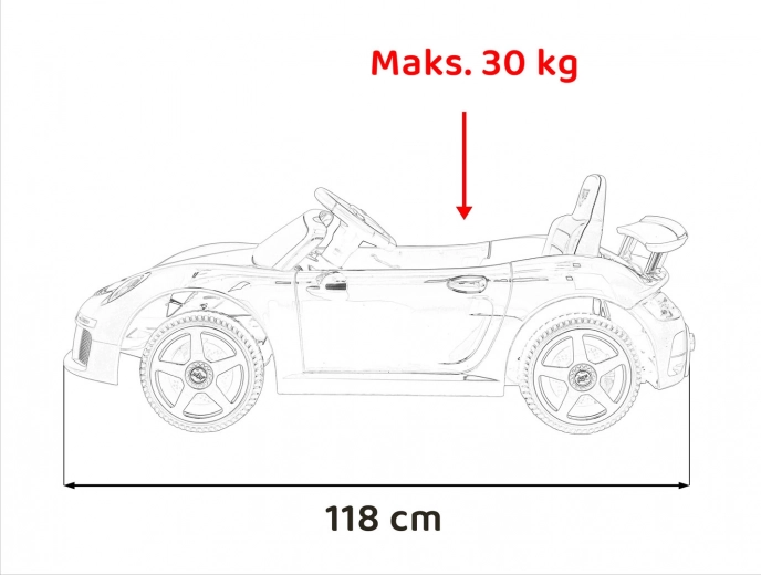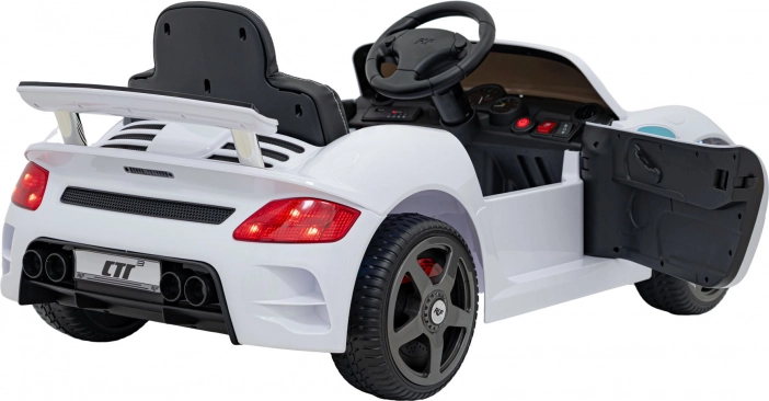 Stylové dětské elektrické autíčko inspirované supersportem RUF CTR3 nabízí bezpečnou a zábavnou jízdu pro malé řidiče. Díky výkonnému pohonu 2×35 W, baterii 12 V 9 Ah a měkkým EVA kolům se snadno ovládá na různých površích. O realističnost se starají LED světlomety a zadní světla, otevírací dveře a koženkové sedadlo s bezpečnostním pásem. Rodiče ocení dálkové ovládání 2,4 GHz se STOP tlačítkem a volbou 3 rychlostí.