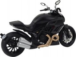 Tento precizně zpracovaný model kombinuje robustní kovové tělo s plastovými detaily, díky kterým vyniknou realistické linie, výfuky, kotouče a texturované sedlo. Integrované světlo a zvuk (3× AG13, součástí balení) umocňují zážitek ze hry i prezentace na stojanu.