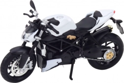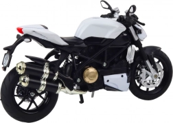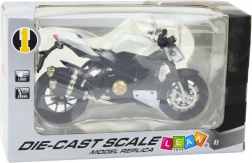 Realistický kovový model sportovního motocyklu v měřítku 1:12 nabízí precizní detaily, kovovou konstrukci a interaktivní efekty světla a zvuku. Díky otočným kolům, zatáčejícím řídítkům a pruženému odpružení působí při hraní i vystavení maximálně věrohodně. Součástí jsou baterie AG13 a elegantní bílý závodní design.