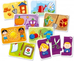 - 8 tematických obrázků se třemi dílky pro snadné první skládání