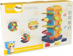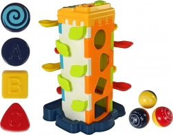 Tato chytrá hračka motivuje děti k aktivní hře a rozvoji dovedností. Vhoďte míčky do horního otvoru a sledujte jejich cestu po patrech dolů. Na boční stěně děti najdou třídicí otvory pro různé tvary a na další straně pianínko pro první hudební experimenty. Vše je vyrobeno z bezpečného, certifikovaného plastu s hladkými, oble zaoblenými hranami.