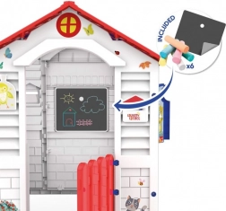 - Domek obsahuje křídy a tabuli na kreslení.