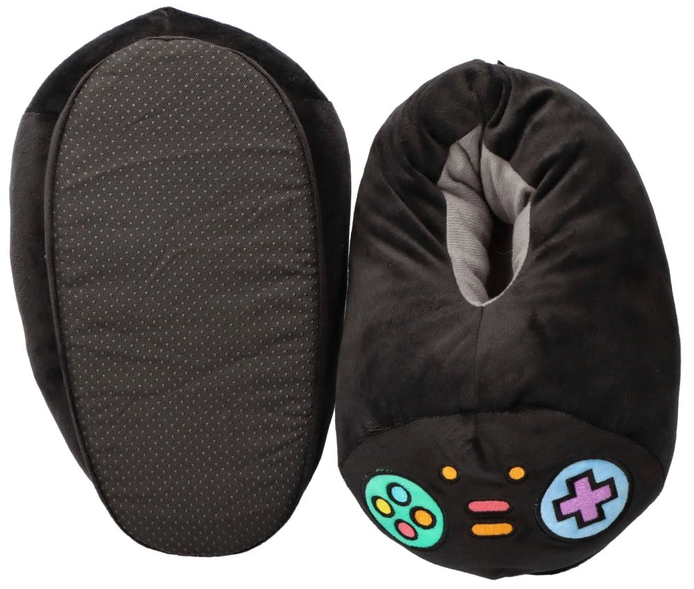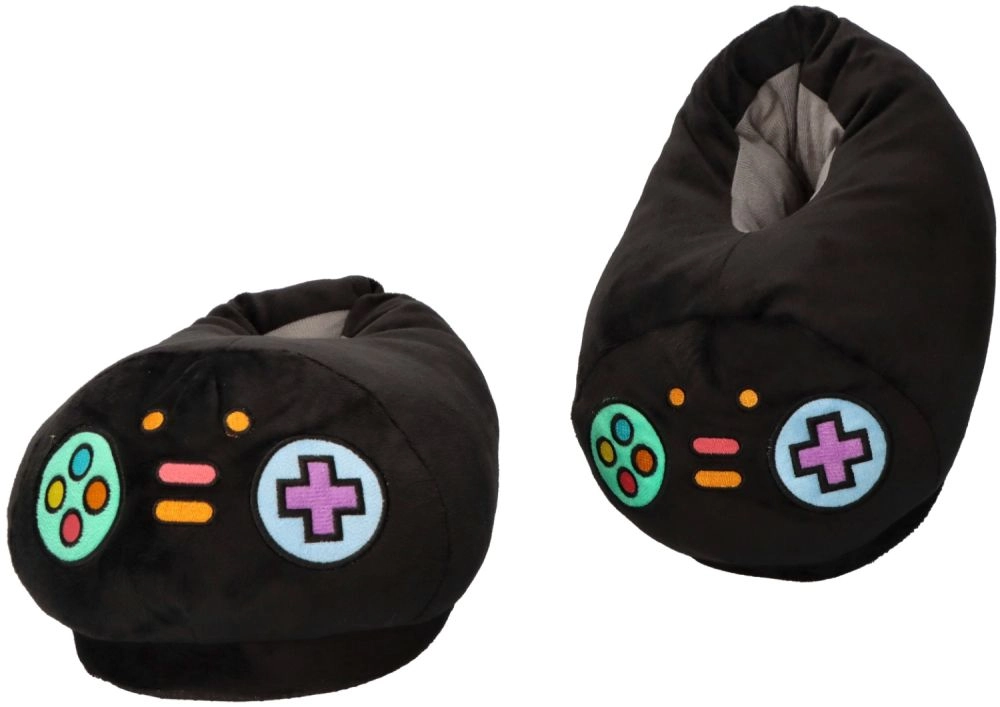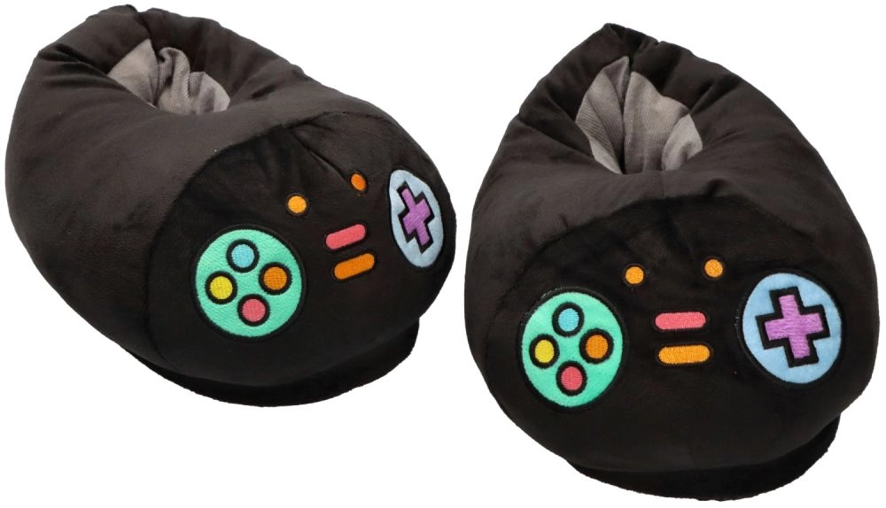 Zabalte chodidla do pohodlí s originálními pantoflemi Let's Play. Jejich měkké polstrování a hřejivý plyš se postarají o komfort během chladných dní, zatímco barevná výšivka tlačítek evokuje retro herní ovladače. Díky protiskluzové spodní straně se budete doma cítit jistě i na hladkých podlahách.