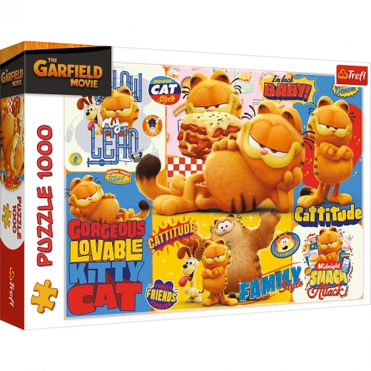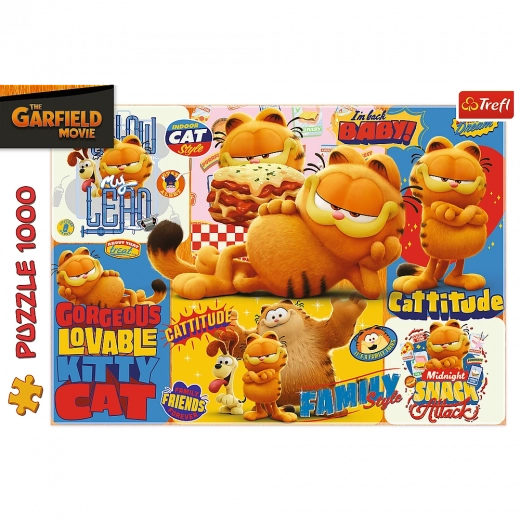 Puzzle Trefl 1000 dílků s motivem Garfield – zábavné dobrodružství, kvalitní tisk a přesné dílky. Skvělá výzva i dárek pro fanoušky Garfielda.