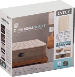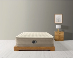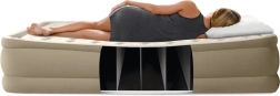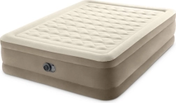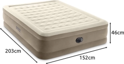 Dvouosobový nafukovací matrac INTEK s technologií Dura‑Beam s vlákny Fiber‑Tech nabízí vysokou nosnost 272 kg, rychlé nafouknutí za cca 3 minuty díky vestavěné elektrické pumpě a měkký velurový povrch pro maximální pohodlí. Integrovaný systém vzduchových polštářů zajišťuje skvělé podepření hlavy a krku a matrace se nedeformuje ani nepropadá ani při častém používání.