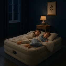 Matrace je po vyfouknutí kompaktní a lehká, snadno ji uložíte do skříně, cestovní tašky či kufru auta. V balení najdete také praktickou přepravní tašku s držadly. Vhodná pro domácí použití, pro hosty, do stanu, na kemping i na chatu. Luxusní horní systém vzduchových polštářů zvyšuje komfort a podporu krční páteře.