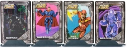 Brainiac, Batman, Superman a Flash v praktické výšce cca 5 cm s detailním zpracováním a metalickým efektem – připravené na vystavení i hraní.