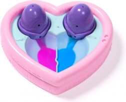 Vložte vajíčka do srdíčkového bazénku, sejměte křidélka a pomalu nalévejte vodu. Jakmile obě strany srdce změní barvu, postavičky se vylíhnou. Přidáním více vody se odstíny spojí do fialové pro ještě větší wow efekt.