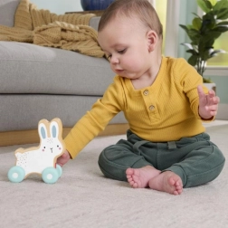 Tento půvabný králíček na kolečkách inspiruje nejmenší k aktivní hře – od prvních doteků a popostrkování při sezení až po lezení a pronásledování hračky po podlaze. Kompaktní tvar skvěle padne do malých ruček a plynulá jízda podporuje koordinaci pohybů a přirozenou zvídavost.