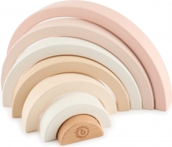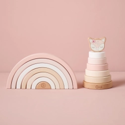 Tato minimalistická dřevěná duha se stane oblíbenou hračkou i designovým doplňkem dětského pokoje. Děti mohou oblouky skládat, třídit, stavět mosty a tunely nebo je využít jako domečky a ohrádky pro figurky. Jednoduché tvary podněcují fantazii a samostatnou hru.