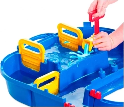 Sada AquaPlay megamost přináší do vaší zahrady atmosféru prázdnin. V prostorném přístavu se zámkem mohou být lodě zvedány pomocí ruční pumpy, což umožňuje jejich snadný průjezd skrze zámek. Automobily se dostanou na rampu trajektu přes sklápěcí most. Po bezpečném zakotvení pomocí dvou háků může vozidlo vjíždět na palubu trajektu a cesta začíná širokými kanály. Ale pozor: široký most se nejprve musí otevřít, aby loď mohla pokračovat v plavbě. Malí průzkumníci rozhodují, zda cesta pokračuje kanály či zpět na most. Vodní kanálový systém zajišťuje dlouhotrvající a poutavou zábavu. Sady AquaPlay garantují kreativní a zábavný způsob učení, jak se voda pohybuje a stoupá! Pečlivě navržené těsnění jsou snadno montovatelné a dokonale utěsňují dráhy. Každé balení obsahuje jasné montážní pokyny.