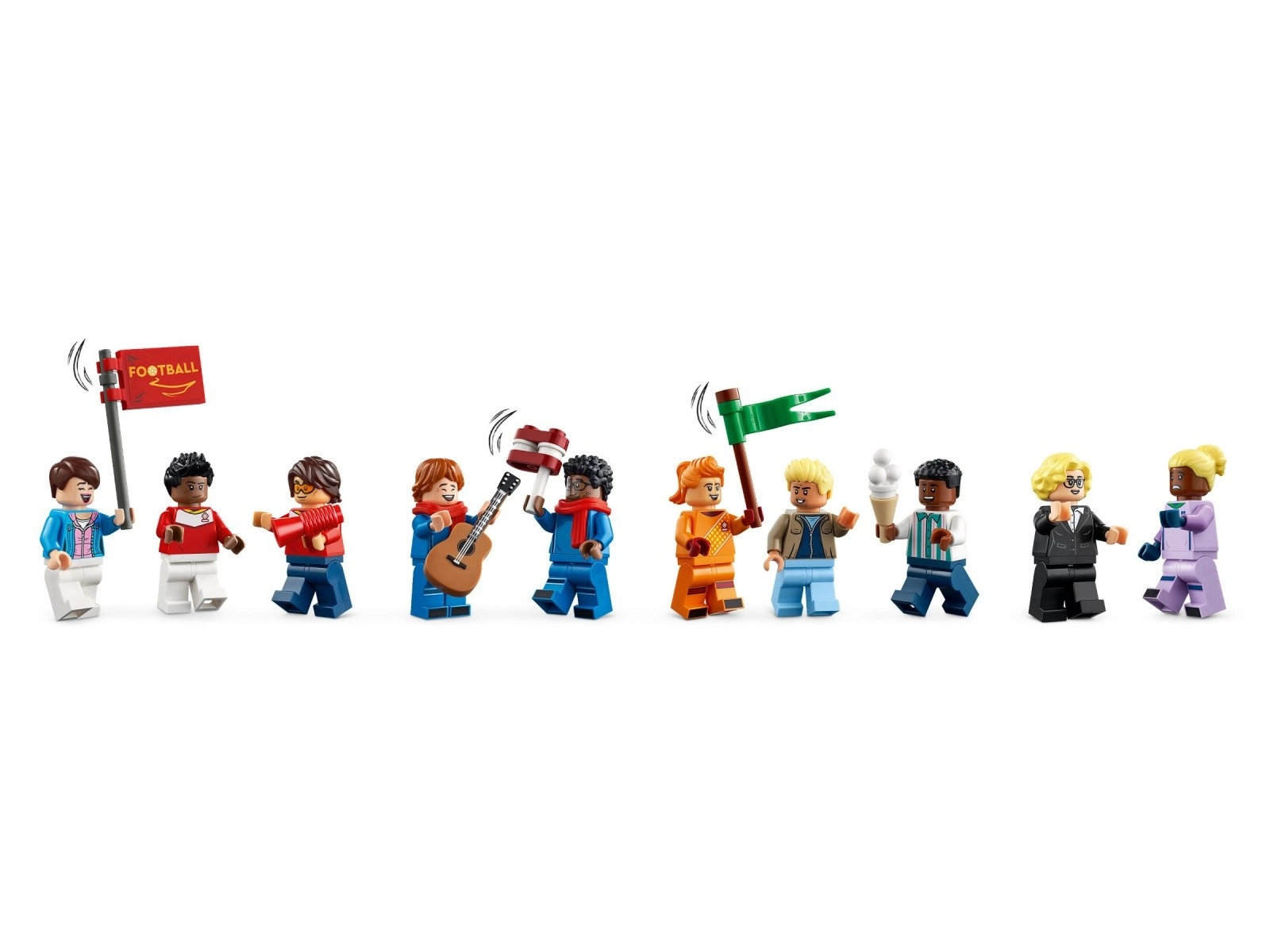 Součástí je 15 minifigurek, které reprezentují rozmanitý fotbalový svět – včetně ikon jako Megan Rapinoe, Yuki Nagasato, Sam Kerr a Asisat Oshoala. Díky bohatému příslušenství si postavíte autentickou atmosféru stadionu a užijete si nekonečné scénáře od výkopu až po oslavy trofeje.