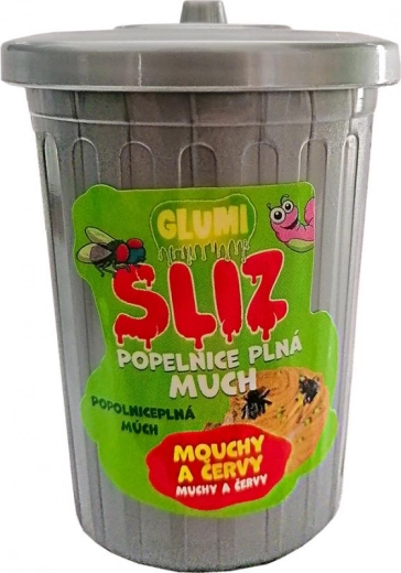 Glumi sliz v popelnici s mouchami a červy