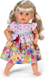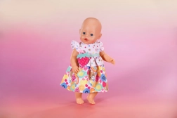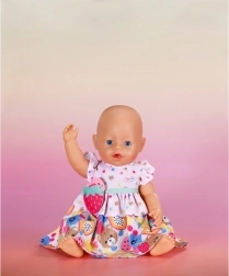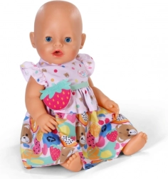 Oživte šatník panenek BABY born těmito kouzelnými šaty s ovocným potiskem. Díky volánkovým detailům a zábavnému pásku s jahůdkou působí outfit svěže a hravě. Skvěle padnou panenkám i medvídkům BABY born Teddy ve velikosti 43 cm.