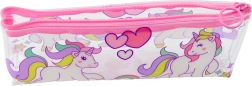 Rozkošný penál s motivem jednorožců je perfektním společníkem pro každodenní školní potřeby. Transparentní tělo s jasně růžovým zipem se snadno vejde do batohu nebo školní skříňky, aniž by zabíral mnoho místa. Díky průhlednému materiálu rychle identifikujete obsah, což usnadňuje organizaci školních potřeb.