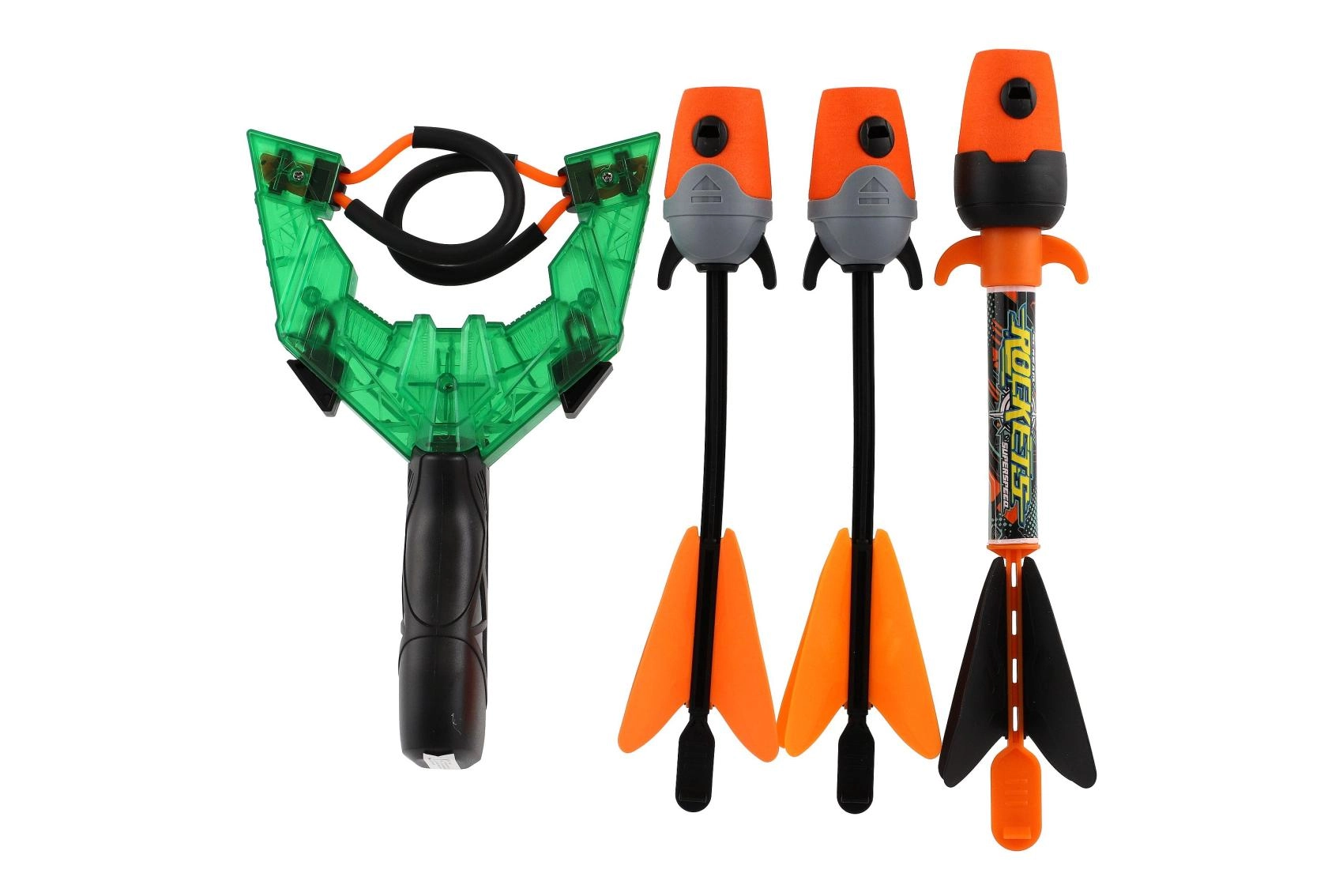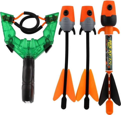 Dětský prak se 3 pískajícími šipkami pro zábavnou střelbu na dálku, do výšky i na terč. Rozvíjí zručnost a přesnost. Vhodné od 8 let.