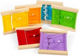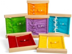 Díky různým typům zapínání si děti bezpečně osvojí praktické dovednosti, které využijí každý den. Dřevěné rámečky s textilií jsou pevné, odolné a vyrobené z FSC® dřeva s důrazem na udržitelnost a bezpečnost.